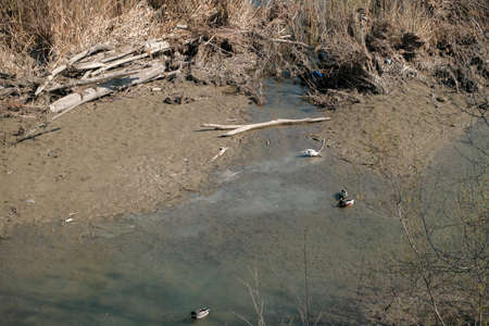 enza river from the bridge of Montecchio Emilia Reggio Emilia with ducks and mallards. High quality photo