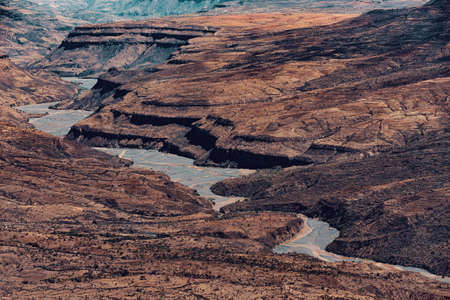 Beautiful mountain landscape with canyon and dry river bed, Oromia Region. Ethiopia wilderness landscape, Africa.