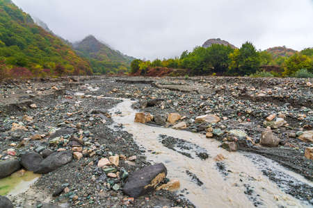 Mountain river bed in autumn season