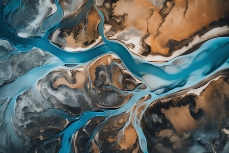 Aerial view of the river in the mountains. Colorful abstract background, Aerial view from above on a green and blue glacier river stream in South Iceland, AI Generated