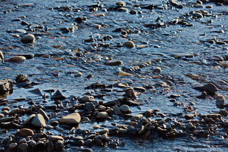 Stones on the shore of a mountain river in the autumn.