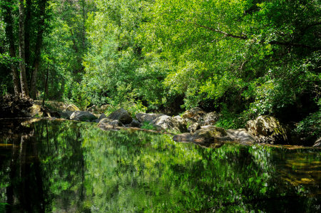 Thermal area of Carves River, Prexigueiro, Ribadavia, Orense, Spain. Green exuberant environment