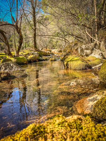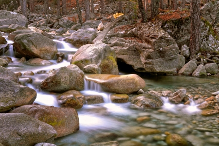 The River Manzanares. Along its course through La Pedriza, in Guadarrama Mountains National Park, Madrid, Spain.