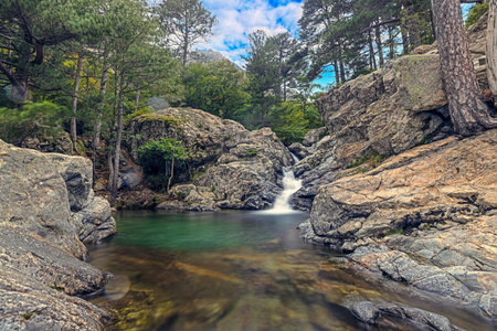 The natural waterfalls, rock pools and cascades of Restonica valley near Corte in Corsica