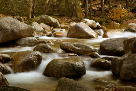 Very scenic cascades in the White Mountains of New Hampshire. The water winds and flows over the granite boulders in the stream. Taken with a slow shutter speed to smoth the water.