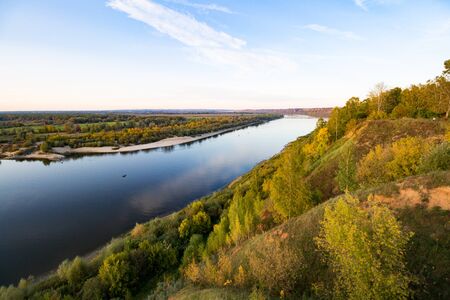Wide river from the height of the autumn in the daytimr