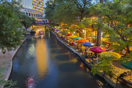 SAN ANTONIO, TEXAS, USA - SEP 27: Section of the famous Riverwalk on September 27, 2014 in San Antonio, Texas. A bustling place with many restaurants and bars.