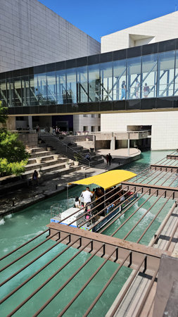 Monterrey, Nuevo Leon, Mexico - Jul 29, 2025: Sightseeing tour of Paseo Santa Lucia in Monterrey by boat from the city downtown to Fundidora Park