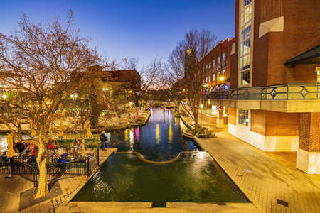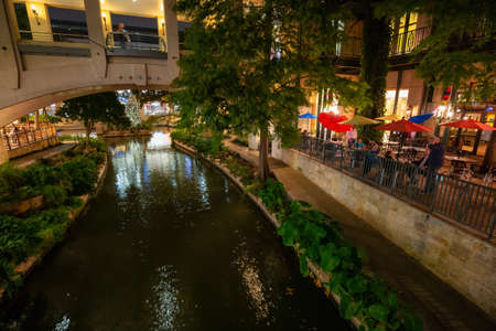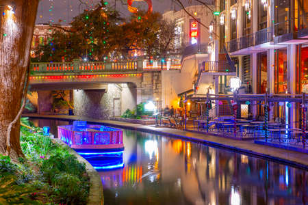 San Antonio, Texas, United States -November 7, 2018: Beautiful view of San Antonio River Walk during the night.
