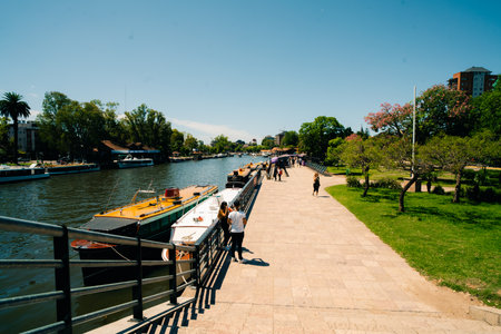 Panoramic view of Boats at Tigre River - Tigre, Buenos Aires, Argentina. High quality photo