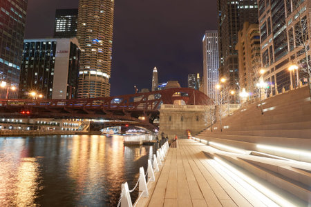 CHICAGO, IL - CIRCA APRIL, 2016: Chicago at night time. Chicago is the third most populous city in the United States
