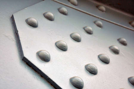Metal texture with rivets and rivets, closeup of photo