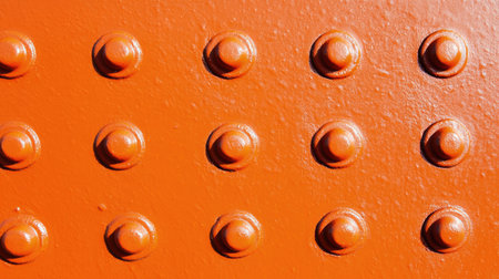 A vibrant orange surface featuring rounded studs, creating an industrial design aesthetic. This close-up captures the textured details suitable for various creative projects.
