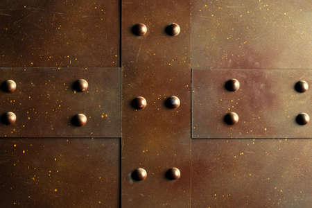 Metal background, old copper wall with rivets