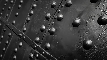 A macro shot of riveted steel plates showcasing the minute details of each rivet and the imperfections that give the texture a unique charm