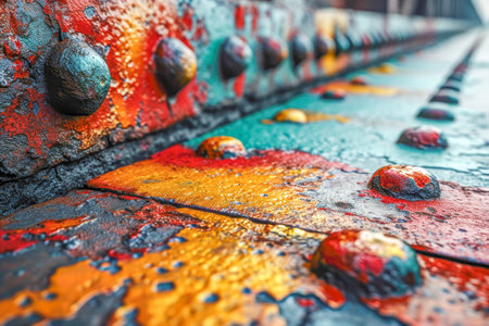 An AI illustration of an abstract composition of metal plate, set of various colors.