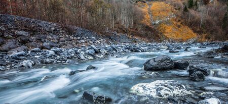 The river le Giffre riverscape at the alpine village of Sixt Fer a Cheval, France