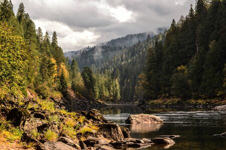 Cloudy day on a beautiful river in fall
