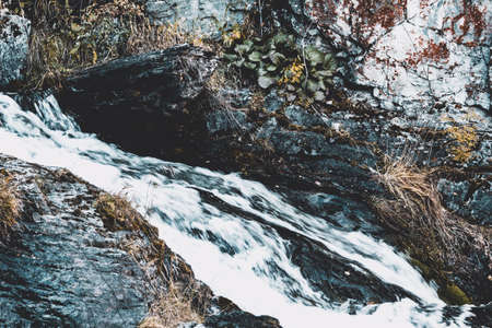 Close up mountain river flows