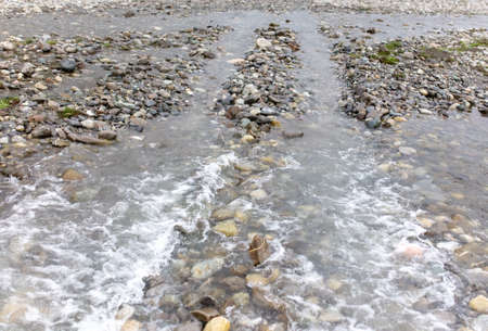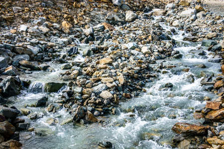Beautiful mountain stream with pieces of ice.