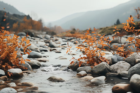 a large stream flows through rocky terrain near a grass field, captured in the unique style of anamorphic lens flare and tilt-shift photography. the image showcases a dark amber and silver color palette, enhanced by the use of fujifilm superia x-tra 800 film. this close-up shot, taken by bertil nilsson with a minolta riva mini, beautifully captures the natural beauty of the scene. ai generated