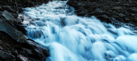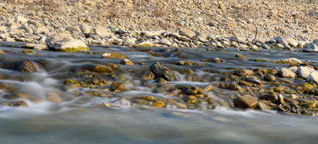Capturing the swift motion of a flowing river on camera. Concept Riverscapes, Long Exposure, Nature Photography, Motion Blur, Flowing Water