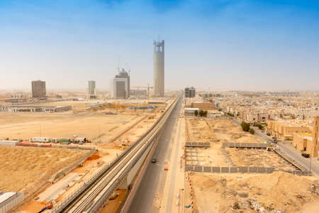 Riyadh, Saudi Arabia, KSA - February 10, 2020 north of Riyadh city view with a new buildings and metro railway station being constructed
