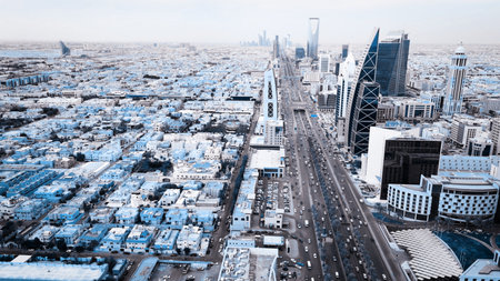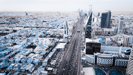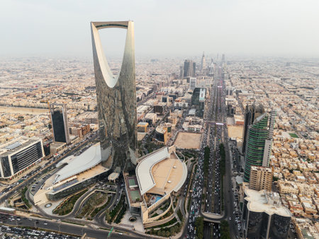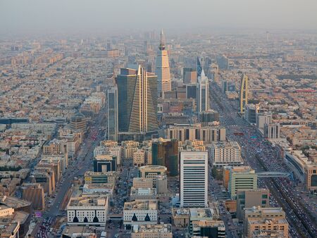 Arial view of Riyadh City Saudi Arabia .Aerial panorama of downtown of Riyadh city with skyscrapers of Al Olaya central business district, Al Riyadh, Saudi Arabia