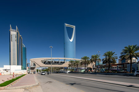 Mamlaka tower, kingdom tower in capital city in riyadh Saudi Arabia. morning vibes with clear sky.