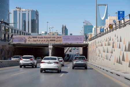 RIYADH, SAUDI ARABIA - NOVEMBER 30, 2021: Traffic on the King Fahd road in Riyadh, Saudi Arabia
