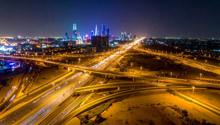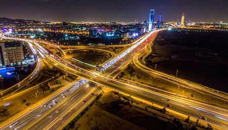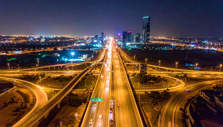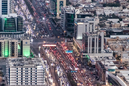 RIYADH, SAUDI ARABIA - DECEMBER 1, 2021: Aerial view of the King Fahd road in Riyadh, Saudi Arabia