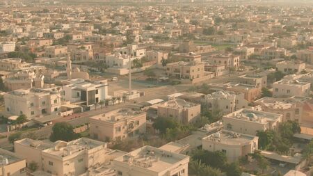 Low altitude aerial view of residential houses and streets in Dubai, United Arab Emirates UAE
