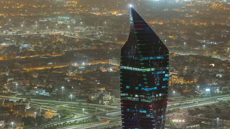 KUWAIT - CIRCA MARCH 2017: Kuwait City cityscape from top night timelapse is the capital of Kuwait. It has a population of 2.38 million in the metropolitan area. Located on the shore of the Persian Gulf.