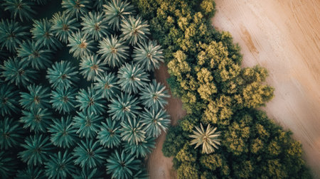Aerial view of UAE Al Ain Oasis with green date palms. Copy space