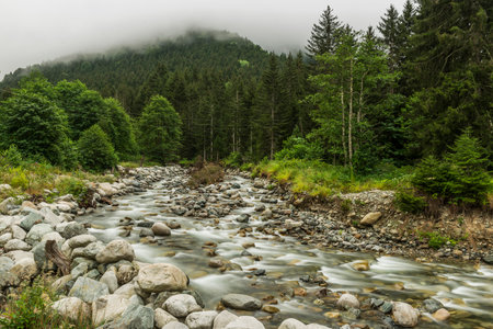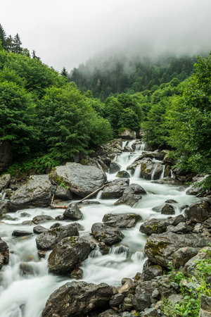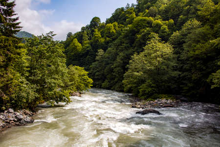 Stuning forest and river views of Karadeniz Black Sea region of Northern Turkey Camlihemsin Cat Village in Rize Turkey