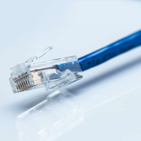A lan connector close up isolated in white background. Copy space. Space for text.