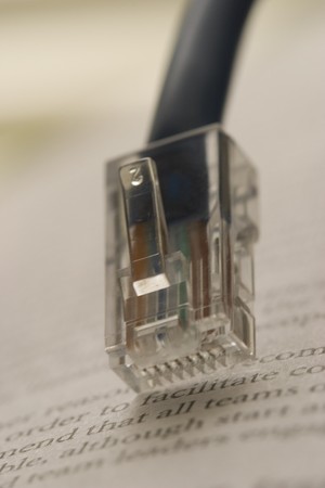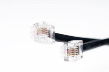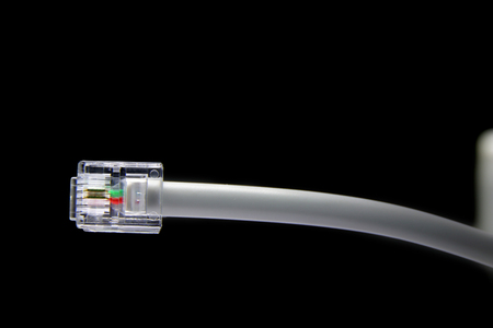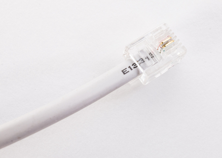 Close up shot of a telephone cable with socket, analog data transmit wire
