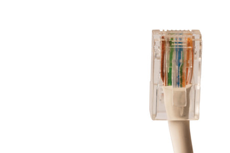 This close-up image features a glowing Ethernet cable connector, illustrating the technology behind digital communication. Perfect for tech-oriented themes.