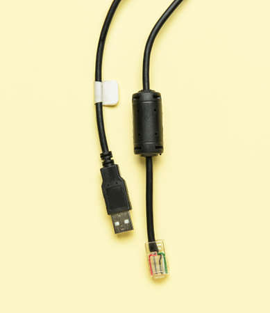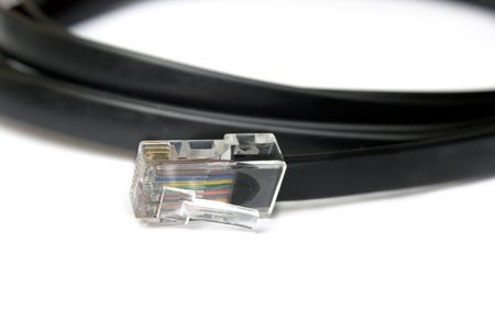 Close up shot of a telephone cable with socket, analog data transmit wire