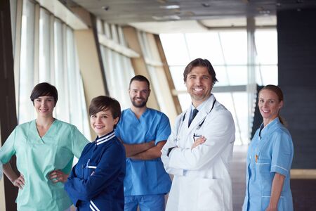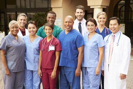 Portrait of happy doctors, nurses and other medical staff in hospital.