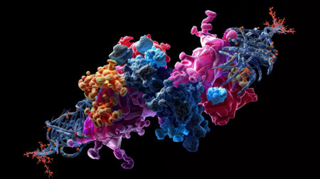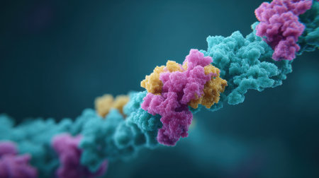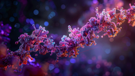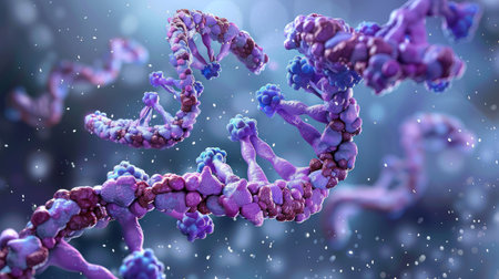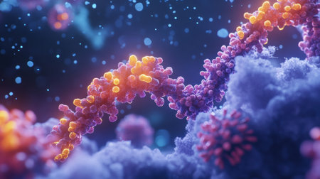 Explore the complex world of RNA. Perfect for illustrating scientific research, medical breakthroughs, or educational content with molecular insights.