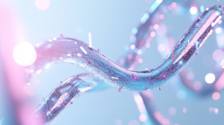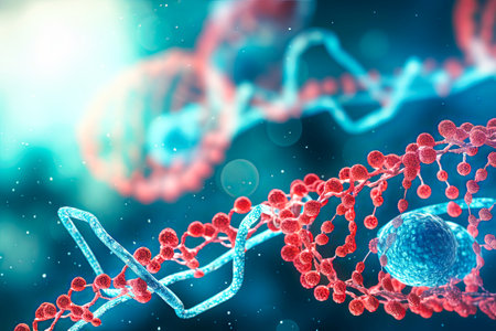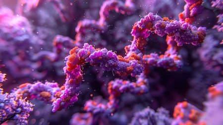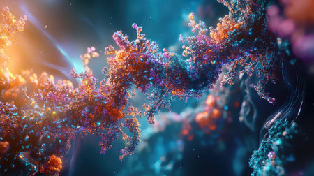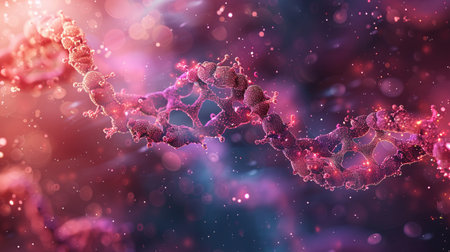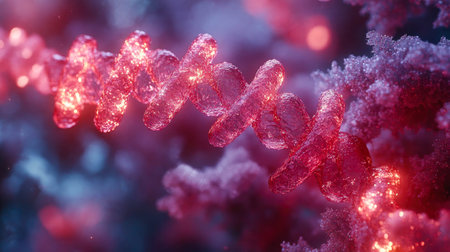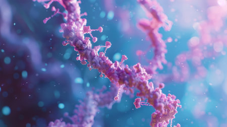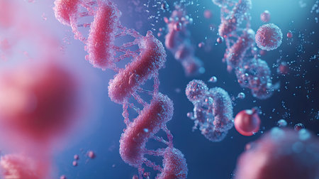 This stunning image captures the intricate details of DNA and vibrant cells at a microscopic level, showcasing the beauty of genetic forms and scientific exploration.