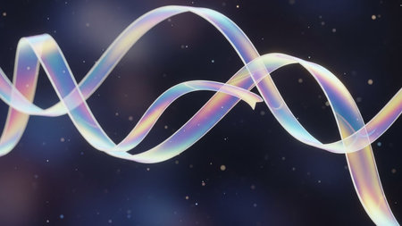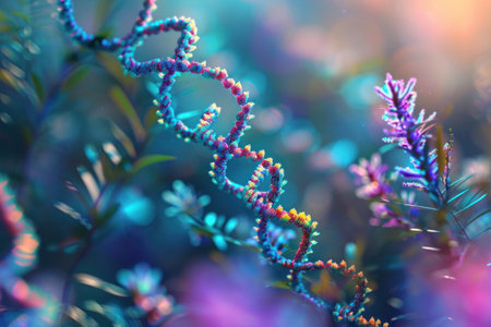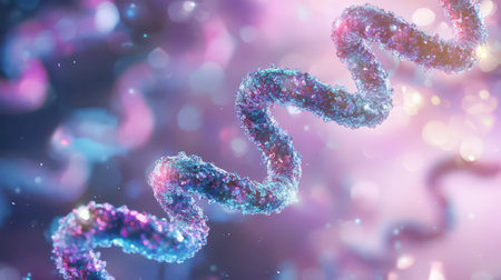 Colorful representation of DNA double helix, showcasing vibrant hues and intricate details. fluid like structure conveys sense of movement and life, emphasizing complexity of genetic material