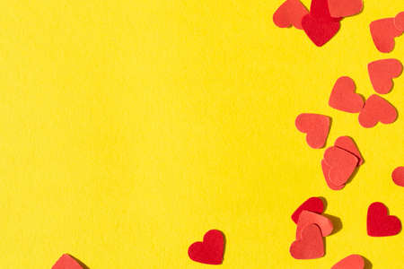 Red hearts over shiny white background with copy space for text. Love symbol. St. Valentine's Day celebration concept. Template for greeting or wedding card