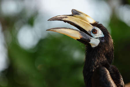 Hornbill bird portrait with open beak. Bali. Indonesia
