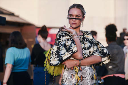 Milan, Italy - February 20, 2019: Street style outfit before a fashion show during Milan Fashion Week - MFWFW19