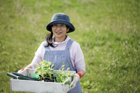 A joyful elder is engaged in gardening, nurturing plants while enjoying a peaceful afternoon outdoors.