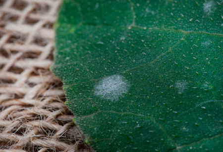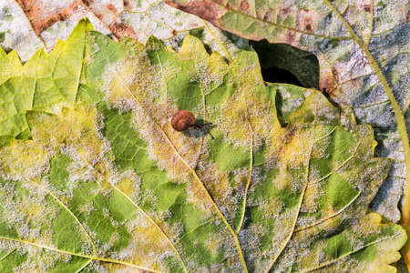Powdery mildew, fungal disease close- up on infected leaves
