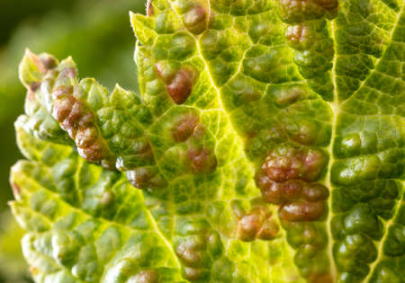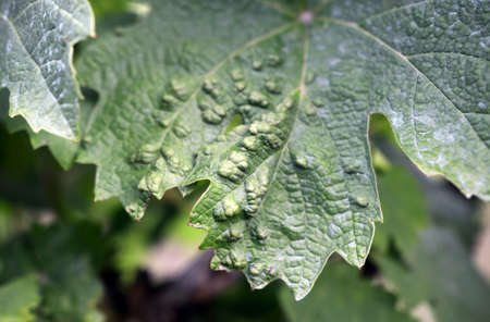 closeup of vine grape leaf disease Eriophyes pyri