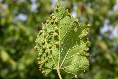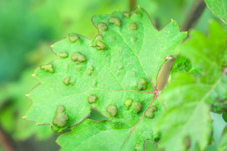 Grapevine leaf infested and affected by Phylloxera grape aphid (Dactylosphaera vitifoliae)